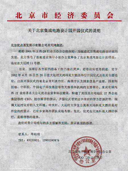 首屆呼叫中心運(yùn)營(yíng)管理研討會(huì)組委會(huì) 重要通告 本次大會(huì)組委會(huì)及會(huì)議舉辦地點(diǎn)“天鴻科園大酒店”日前接到北京市人民政府通知,由于“北京集成電路設(shè)計(jì)園開(kāi)園儀式”將于2002年4月18日至4月20日在大運(yùn)村、天鴻科園大酒店舉行開(kāi)園儀式及相關(guān)活動(dòng),屆時(shí)將有北京市劉淇市長(zhǎng)、海燕市長(zhǎng)及國(guó)家信息產(chǎn)業(yè)部、國(guó)家科技部、中科院、中國(guó)電子科技集團(tuán)等有關(guān)部委和機(jī)構(gòu)的主要領(lǐng)導(dǎo)出席。按市領(lǐng)導(dǎo)指示,為配合此次重大活動(dòng)圓滿(mǎn)舉行,“首屆呼叫中心運(yùn)營(yíng)管理研討會(huì)”日期更改為2002年4月23日至4月25日在北京天鴻科園大酒店舉行,望有關(guān)參會(huì)單位做好相應(yīng)的后續(xù)工作。特此通告! 組委會(huì)對(duì)有關(guān)參會(huì)單位的支持與配合表示真誠(chéng)的感謝。 首屆呼叫中心運(yùn)營(yíng)管理研討會(huì)組委會(huì)