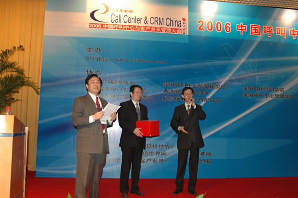 。。我是韓國呼叫中心情報研究所教授,真誠的祝賀這次由CTI論壇組織的呼叫中心產(chǎn)業(yè)的盛會“2006中國呼叫中心與客戶關(guān)系管理大會”圓滿成功。在此,致以真誠的祝賀!
