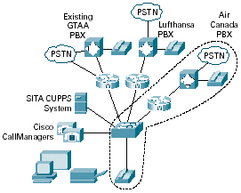 ·            航空公司的撥號計劃——該機場正在為各個航空公司部署不同的分區(qū)和撥號計劃。在缺省情況下,GTAA域中有五個數(shù)字撥號,但是當(dāng)每個航空公司登陸到登機口時,他們希望從他們自己的PBX或者Centrex電話系統(tǒng)獲取線路。這意味著各個航空公司可能擁有重復(fù)的電話號碼,以及關(guān)于哪些電話可以呼叫哪些目的地的不同規(guī)則。這些計劃還包括利用IP技術(shù),與已經(jīng)在兩年前部署思科IP電話的AC Jazz航空公司進行互聯(lián)的潛在能力。