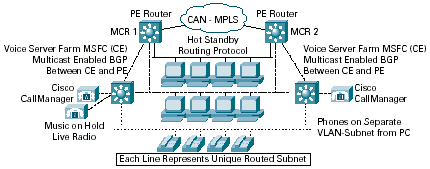 語音服務(wù)器群MSFC  PE路由器          PE路由器   語音服務(wù)器群MSFC