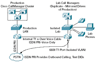 GTAA必須在一個與實際工作網(wǎng)絡(luò)非常接近的模擬環(huán)境中測試新的功能和補丁。Call Manager的復(fù)制版本意味著該網(wǎng)絡(luò)必須被隔離開,以避免機器名和IP地址的沖突。但是,GTAA需要能夠在無需購買額外的電信公司電路的情況下,向外呼叫PSTN或者航空公司的PBX。下面顯示了如何在不提高每月成本的情況下,實現(xiàn)這個目標(biāo),從而為實驗室提供最大限度的功能。