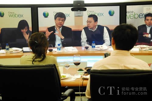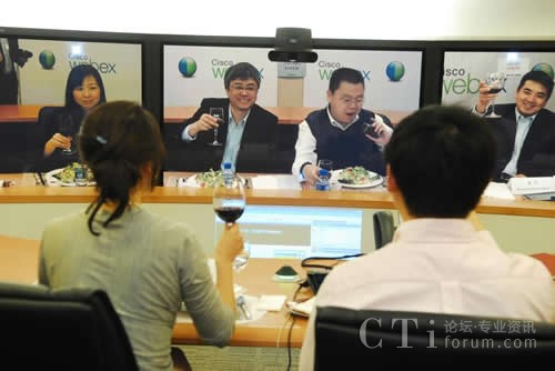 CTI論壇(ctiforum)5月6日消息(記者 楊佳林):中國,北京,2010年4月28日:無需像德國國防部長古滕貝格那樣駕車行駛3000多公里長途奔襲,跨越太平洋也一樣享受零距離的午餐。思科中國首席技術(shù)官梁永健、思科中國區(qū)副總裁華東區(qū)總經(jīng)理陳葵、思科WebEx研發(fā)及協(xié)作軟件全球副總裁袁征今天通過思科的網(wǎng)絡(luò)會議技術(shù)和中國知名博主在北京、上海和舊金山三地共進午餐。