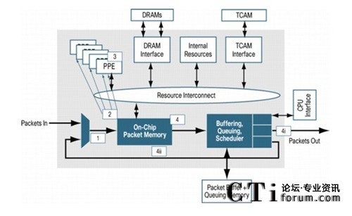 傳統(tǒng)的網(wǎng)絡(luò)處理器為了優(yōu)化報(bào)文分類和處理速度并節(jié)省內(nèi)存訪問帶寬,通常僅訪問數(shù)據(jù)包頭以獲得較高的轉(zhuǎn)發(fā)吞吐量,當(dāng)這類處理器進(jìn)行深度數(shù)據(jù)包檢測(cè)(DPI),防火墻,網(wǎng)絡(luò)地址轉(zhuǎn)換(NAT),Netflow等復(fù)雜操作時(shí),將會(huì)對(duì)性能造成不良影響。