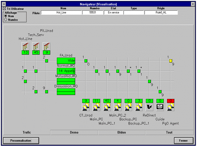 A4400 CCS 呼叫中心監(jiān)管系統(tǒng)是A4400 CCD 的完美配套設(shè)備。此監(jiān)管系統(tǒng)組件提供最新實時監(jiān)控功能。經(jīng)理和主管不僅能很好協(xié)調(diào)呼叫處理過程,而且也能觀察服務(wù)水準(zhǔn)、話務(wù)量情況等,并能在現(xiàn)場采取相應(yīng)的措施。
