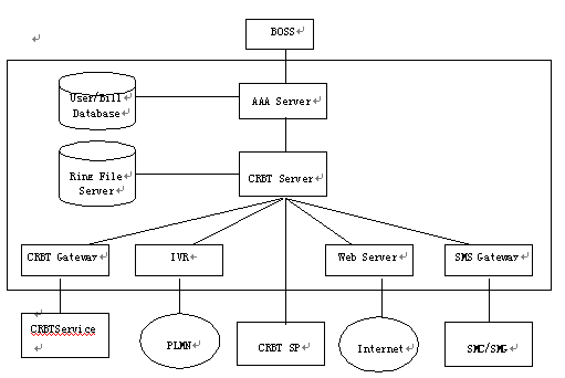 和移動(dòng)網(wǎng)絡(luò)中實(shí)現(xiàn)CRBT的交換系統(tǒng)或智能網(wǎng)進(jìn)行接口,如圖中的CRBTService。