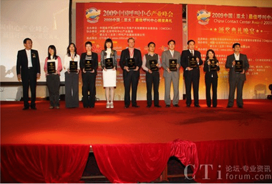 “2009中國(guó)呼叫中心產(chǎn)業(yè)峰會(huì)暨2009中國(guó)(亞太)最佳呼叫中心”頒獎(jiǎng)典禮于10月15日在北京富力萬(wàn)麗酒店舉行并取得圓滿(mǎn)成功。本次大會(huì)由中國(guó)電子商會(huì)呼叫中心及客戶(hù)關(guān)系管理專(zhuān)業(yè)委員會(huì)(CNCCA)主辦,密之云(北京)呼叫產(chǎn)業(yè)基地有限公司協(xié)辦,CTI論壇承辦。同時(shí),大會(huì)還獲得了亞太客服與呼叫中心聯(lián)盟(APCCAL)、上海市呼叫中心與無(wú)線尋呼協(xié)會(huì)和北京市通信行業(yè)協(xié)會(huì)呼叫中心專(zhuān)業(yè)委員會(huì)等機(jī)構(gòu)的大力支持。