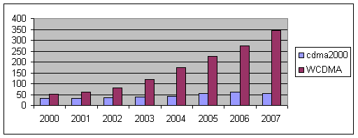 在2002年至2007年的預(yù)測期內(nèi),收入增長率將穩(wěn)定提高,從而將提高覆蓋率,用戶滲透率也會穩(wěn)定增長。2007年,由于WCDMA基礎(chǔ)設(shè)施的部署的增加,增長率將會有所提高。