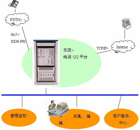 東進(jìn)電話QQ產(chǎn)品是為適應(yīng)通訊行業(yè)發(fā)展需要,面向廣大虛擬運營商和電信運營商的一套集娛樂和學(xué)習(xí)為一體的運營設(shè)備。旨在推廣增值運營的標(biāo)準(zhǔn)化,方便后期的維護(hù)和升級。