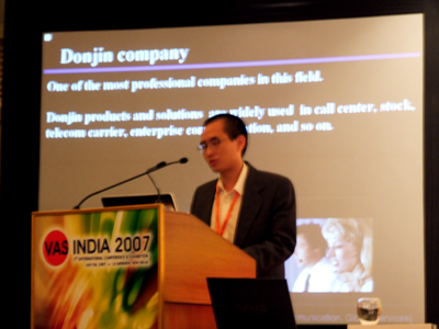 7月6日,印度著名的語(yǔ)音增值服務(wù)展會(huì)——印度2007 VAS展在印度首都新德里舉行,東進(jìn)技術(shù)攜公司的語(yǔ)音產(chǎn)品亮相該展會(huì),并廣受關(guān)注。