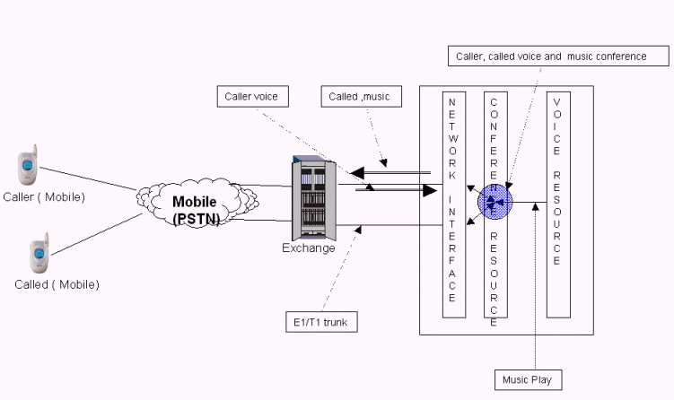 8、電話接通后,SCP發(fā)送命令到IP,在會(huì)議中加入主叫和被叫方播放背景音樂(lè)。