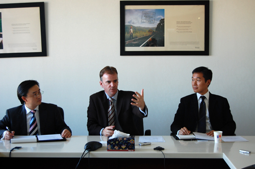 圖: Sybase365公司總裁 Marty J.Beard(居中)