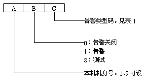 1 告警信息編碼 若發(fā)生告警或告警關閉時,在BP機上會收到3位數(shù)字的代碼信息,其它具含義如下: