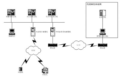 根據(jù)業(yè)務(wù)需求,電話銀行前置機(jī)以 PC服務(wù)器(聯(lián)想萬全服務(wù)器)為硬件平臺(tái),通過PSTN網(wǎng)接電話機(jī)、傳真機(jī)以及其他查詢終端,另一端接電話銀行前置機(jī)中的語(yǔ)音卡。