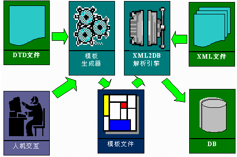 除了直接采用軟件包中包括的兩個(gè)圖形化工具以外,用戶還可以根據(jù)自己的需要用xml2db.jar提供的接口來(lái)開(kāi)發(fā)自己的應(yīng)用程序、中間件或Javabean組件等。