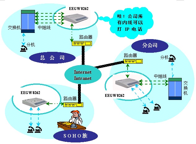 EEGW 8262 FXS根據(jù)國際電信組織ITU-T的H.323協(xié)議,提供語音及傳真在網(wǎng)際網(wǎng)絡(luò)上的服務(wù),只需一個IP地址及兩部電話機(jī)〈傳真機(jī)〉,即可享受VoIP的好處;適合住家型,SOHO族,及中小企業(yè)使用。
