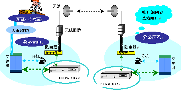 解決方案三:無(wú)線方式下EIPBX網(wǎng)絡(luò)通信系統(tǒng)