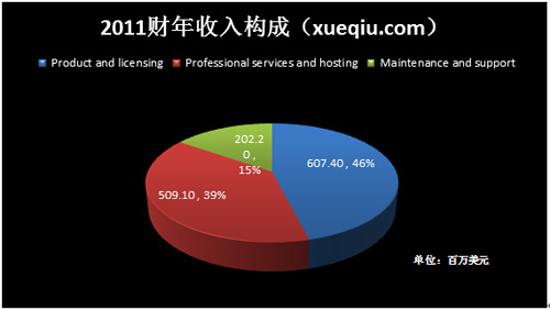 2011財年,Nuance產(chǎn)品銷售及授權(quán)收入總計6.07億美元,同比增28.3%,是增長最快的一項收入來源。占總營收的比重也不斷上升,2011財年升至46.1%,上年同期為42.3%。