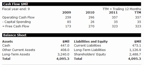 截至2011年9月30日,Nuance現(xiàn)金及現(xiàn)金等價物為4.47億美元。2011財年經(jīng)營性現(xiàn)金流為3.57億美元。