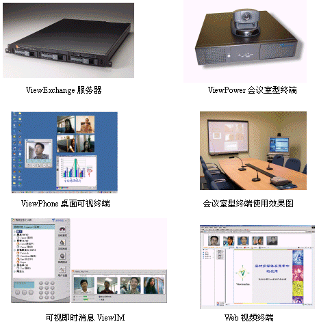 如下圖所示,ViewOffice由會議室型終端ViewPower,客戶端軟件ViewPhone,客戶端即時消息軟件ViewIM,多點控制服務器ViewExchange