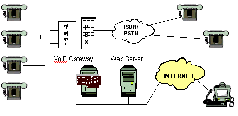 上。當(dāng)用戶點(diǎn)擊這一按扭時(shí),VoIP的應(yīng)用程序,比如NetMeeting,將自動(dòng)地在他們的計(jì)算機(jī)中啟動(dòng)。這個(gè)應(yīng)用程序?qū)⒋蜷_(kāi)同DIVA VoIP 網(wǎng)關(guān)服務(wù)器的連接,然后再由網(wǎng)關(guān)連接到