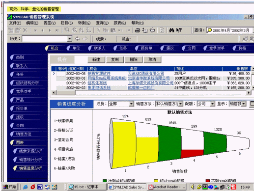 從99年由清華人創(chuàng)立的公司:致力于銷售型CRM軟件的開發(fā),公司有較為全面的CRM理念體系,繼承了MBA的營銷經(jīng)營思路,以及OA的流程化處理思想。