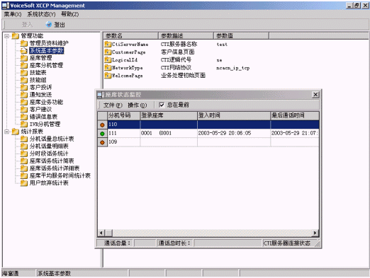 。。提供關(guān)于人工座席呼叫部分所有功能,班長臺提供除普通座席功能其他很多增強功能,詳細(xì)功能說明參見本方案第5.5節(jié)《人工座席》,那里有非常詳細(xì)的說明。