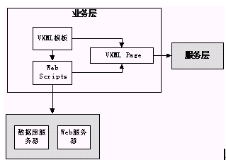通過(guò)上圖可以看出,二次開發(fā)的主要任務(wù)就是業(yè)務(wù)層的開發(fā),簡(jiǎn)單的說(shuō),就是以Voice XML為核心,以Web Scripts語(yǔ)言為業(yè)務(wù)接口,形成完整的業(yè)務(wù)流程交由服務(wù)層處理。