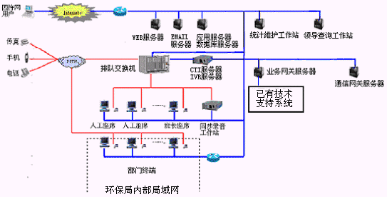 該系統(tǒng)利用環(huán)保局現(xiàn)有的信息網(wǎng)絡資源,將自動語音查詢、人工服務、信息資料處理緊密結合起來,為人民群眾提供全天候24小時不間斷的優(yōu)質(zhì)服務。