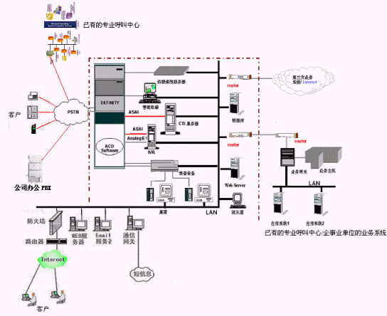 實現(xiàn)共享已有呼叫中心業(yè)務系統(tǒng)的資源:通過城域網(wǎng)或因特網(wǎng)實現(xiàn)與現(xiàn)有呼叫中心相關業(yè)務系統(tǒng)的連接與集成,諸如業(yè)務數(shù)據(jù)的提取等。一期工程留有相應的接口。
