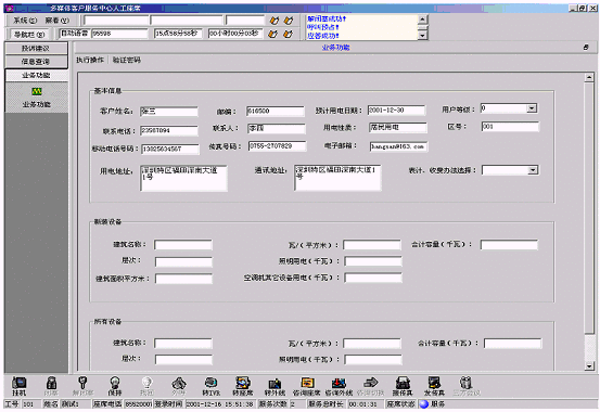 客戶信息包括客戶編號(hào)、客戶名稱、聯(lián)系電話、地址、所屬地區(qū)、地區(qū)編號(hào)、用戶人口數(shù)、樓層等多項(xiàng),接聽(tīng)客戶呼入電話,由座席代表記錄信息形成檔案,也可采用更為主動(dòng)的呼出方式來(lái)確認(rèn)、核實(shí)、補(bǔ)充檔案。
