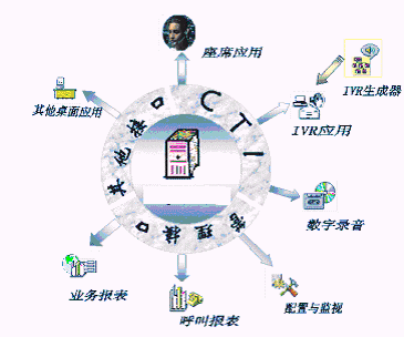 投訴建議,錄音留言,語(yǔ)音信箱管理,轉(zhuǎn)有關(guān)部門辦公電話,自動(dòng)語(yǔ)音服務(wù),人工座席服務(wù),呼出服務(wù)等為一體的客戶服務(wù)軟硬件平臺(tái),充分整合現(xiàn)有資源,建立起對(duì)現(xiàn)有計(jì)算機(jī)技術(shù)支持系統(tǒng)等業(yè)務(wù)系統(tǒng)的(如ERP系統(tǒng),售后服務(wù)系統(tǒng)等)數(shù)據(jù)加工、分析、再應(yīng)用的汽車制造企業(yè)具有基本CRM功能的呼叫中心系統(tǒng)/客戶服務(wù)中心的一體化軟硬件CTI平臺(tái)。