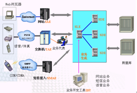 單個SLE同時支持電話、網(wǎng)站、短消息等接入方式,通過SDT制作業(yè)務流程可以實現(xiàn)多種接入方式的互通的業(yè)務。
