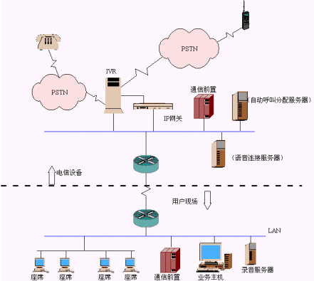 系統(tǒng)支持四種座席配置:PC+耳麥、PC+IP電話、PC+傳統(tǒng)電話、IP電話或傳統(tǒng)電話,其中座席采用PC+耳麥這種配置最容易擴(kuò)展,只要有一臺多媒體電腦和一付耳麥連接到可管理的IP網(wǎng)絡(luò)即可增加一個座席。
