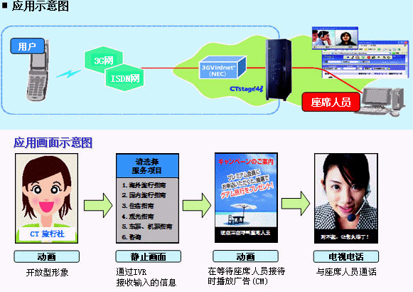 該系統(tǒng)是以O(shè)KI的呼叫中心系統(tǒng)"CTstage®4i"為基礎(chǔ),通過將NEC的視頻解決方案"3GVirdnet®(注1)"與NTTDoCoMo的3G手機(jī)"FOMA®"網(wǎng)相連,最終共同構(gòu)成了可靈活運(yùn)用"FOMA"電視電話的視頻型呼叫中心系統(tǒng)。這也是日本國內(nèi)首次開發(fā)成功的視頻型呼叫中心系統(tǒng)。