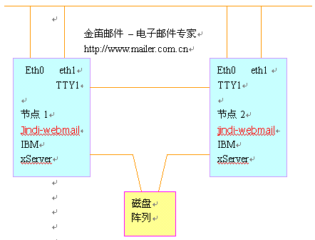 本項(xiàng)目采用金笛集群郵件系統(tǒng),通過兩臺IBM PC服務(wù)器實(shí)現(xiàn)高可用性。支持SMTP, POP3,IMAP等主流協(xié)議,支持WebMail,支持郵件列表等功能,同時(shí)要求兼容性好,與網(wǎng)站其他業(yè)務(wù)系統(tǒng)沒有沖突。