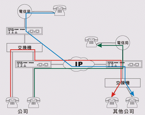 在旅館里亦可利用公司FONEMOSA遠易通撥出電話及收聽語音信箱 將FONEMOSA遠易通在旅館房間裝設(shè)好后,可以在旅館里免費使用各地分公司交換機所有功能,撥接電話就像在辦公室一樣,也可以撥接其它同仁分機電話,或者聽取語音留言,舉凡各類公司交換機功能,在旅館里都一樣可以使用。(圖標(biāo): On-Net Call 網(wǎng)內(nèi)互打, 紅色線路)