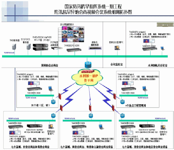 "工欲善其事,必先利其器"。為了推動國家"金水工程"對信息化的要求,2003年,水利部就開始著手籌建國家防汛抗旱指揮視頻會議系統(tǒng)。按照當初的項目規(guī)劃,這次視頻會議系統(tǒng)的建設(shè)主要包括水利部、7個流域機構(gòu)、31個省(區(qū)、市)和4個重點工程局等43個單位的44個節(jié)點。