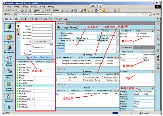 融博公司適應(yīng)市場(chǎng)需求,與著名的獵頭公司一起合作,結(jié)合CRM的理念和現(xiàn)有的軟件平臺(tái),開(kāi)發(fā)出了融博獵頭業(yè)務(wù)管理系統(tǒng)。該系統(tǒng)具有自己獨(dú)特的優(yōu)勢(shì),比如擁有中英文兩種版本;使用WEB方式、具有跨地域信息共享;人力資源信息專(zhuān)業(yè)規(guī)范、覆蓋全面;系統(tǒng)操作簡(jiǎn)單、功能強(qiáng)大;配置靈活、可擴(kuò)展性強(qiáng);復(fù)雜的業(yè)務(wù)關(guān)聯(lián)性;以及生成各種業(yè)務(wù)報(bào)告和業(yè)務(wù)報(bào)表等。該系統(tǒng)采用了模塊化的設(shè)計(jì)方案,可以根據(jù)用戶(hù)的使用權(quán)限和業(yè)務(wù)內(nèi)容,配置不同的業(yè)務(wù)模塊。該系統(tǒng)的功能模塊包括了候選人管理、客戶(hù)管理、雇員管理、定單管理、活動(dòng)管理、績(jī)效管理、系統(tǒng)管理和報(bào)表管理等。