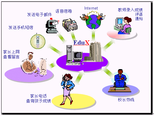 EduX提供電話、手機(jī)短信、EMAIL、WEB等跨媒體信息交互方式,使得家長(zhǎng)和教師以任何他們習(xí)慣的方式進(jìn)行信息聯(lián)絡(luò)。