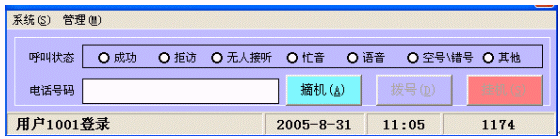 - 坐席功能,坐席人員通過(guò)電腦鼠標(biāo)操作,取新客戶資料,點(diǎn)擊撥號(hào),同時(shí),用鼠標(biāo)操作記錄撥號(hào)過(guò)程和通話過(guò)程的一些設(shè)置(撥號(hào)成功、忙線、無(wú)人接、客戶反饋信息等)。坐席電腦將分類顯示忙線電話列表、無(wú)人接電話列表、感興趣客戶列表等信息,以便做下一輪撥號(hào)參考。