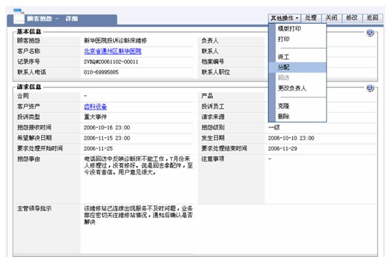 醫(yī)療設(shè)備的維修以現(xiàn)場(chǎng)服務(wù)為主,在接到客戶(hù)服務(wù)請(qǐng)求到派工的流程,依靠紙張遠(yuǎn)遠(yuǎn)達(dá)不到高效的要求,維修情況的記錄已僅僅是事后的文字記錄,通常需要層層上報(bào),更不具備匯總和統(tǒng)計(jì)分析的功能,作為領(lǐng)導(dǎo)不能適時(shí)監(jiān)控和管理在外的維修服務(wù)工程師。