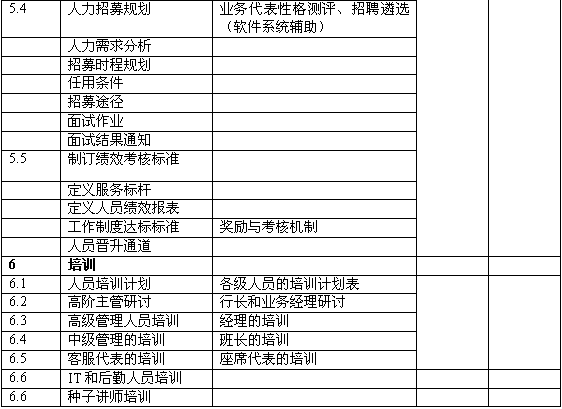 6.提出了未來客戶滿意度、分流柜面比率、產(chǎn)品促銷量等方面的量化比率;針對客服中心的主要業(yè)務(wù)提供量化的目標(biāo),并提出達成目標(biāo)的前提條件;對未來人員和系統(tǒng)規(guī)模提供量化預(yù)估。