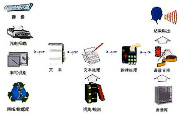 -----按照人類言語功能的不同層次,語言合成也可分成三個層次,它們是:(1)從文字到語音的合成(Text-To-Speech);(2)從概念到語音的合成(Concept-To-Speech);(3)從意向到語音的合成(Intention-To-Speech)。這三個層次反映了人類大腦中形成說話內(nèi)容的不同過程,涉及人類大腦的高級神經(jīng)活動。不難想象,即使是按規(guī)則的文字到語音合成(文語合成)也已經(jīng)是相當(dāng)困難的任務(wù)。為了合成出高質(zhì)量的語言,除了依賴于各種規(guī)則,包括語義學(xué)規(guī)則、詞匯規(guī)則、語音學(xué)規(guī)則外,還必須對文字的內(nèi)容有很好的理解,這將涉及自然語言理解的問題。從這一點(diǎn)講,文語轉(zhuǎn)換系統(tǒng)實際上也可看作一個人工智能系統(tǒng)。圖1顯示了一個完整的文語轉(zhuǎn)換系統(tǒng)示意圖。文語轉(zhuǎn)換過程是先將文字序列轉(zhuǎn)換成音韻序列,再由語音合成器生成語音波形。其中第一步涉及語言學(xué)處理,例如分詞、字音轉(zhuǎn)換等,以及一整套有效的韻律控制規(guī)則;第二步需要先進(jìn)的語音合成技術(shù),能按要求實時合成出高質(zhì)量的語音流。因此一般說來,文語合成系統(tǒng)都需要一套復(fù)雜的文字序列到音素序列的轉(zhuǎn)換程序,也就是說,文語轉(zhuǎn)換系統(tǒng)不僅要應(yīng)用數(shù)字信號處理技術(shù),而且必須有大量的語言學(xué)知識的支持。當(dāng)然其中語音合成終究還是最基本的部分,它相當(dāng)于“人工嘴巴”,任何語言合成系統(tǒng)包括文語轉(zhuǎn)換系統(tǒng),都離不開語音合成器。