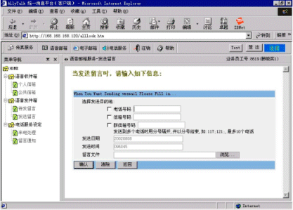 運行管理:語音郵件信箱可以做為企業(yè)電子郵件系統(tǒng)的一部分進行運行管理。AllyTalk統(tǒng)一消息中有一個在Windows NT/2000環(huán)境下運行的用于管理目的控制臺
