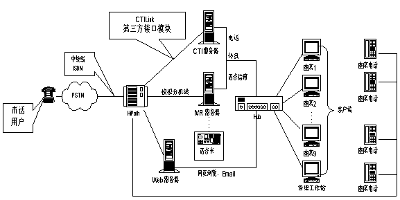正是為解決對不同消息來源進行統(tǒng)一處理,北京強訊公司根據(jù)多年來在企業(yè)級辦公自動化通信領域積累的經(jīng)驗,充分考察大多數(shù)企業(yè)的實際情況,本著合理利用現(xiàn)有設備,以最小的投入獲取最大的效益的原則,推出AllyTalk 企業(yè)級統(tǒng)一消息平臺,它將交換技術、CTI技術、INTERNET技術合理地應用到系統(tǒng)中,包含了基于數(shù)據(jù)庫的智能化呼叫分配(ACD)、交互式語音應答(IVR)、傳真服務器(Fax Server)、電子郵件、統(tǒng)一消息處理平臺等業(yè)務。