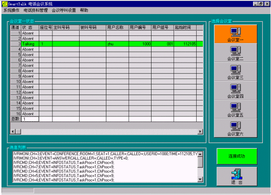 為了突破傳統(tǒng)電話會(huì)議系統(tǒng)的功能局限性,降低采用可視電話會(huì)議系統(tǒng)的高昻成本,本公司采用先進(jìn)的CTI技術(shù)和設(shè)備,推出了SmarTalk Conference電話會(huì)議系統(tǒng),具有超強(qiáng)的會(huì)議能力(同時(shí)可建立多個(gè)會(huì)議,每個(gè)會(huì)議最多同時(shí)可以設(shè)60個(gè)全功能會(huì)議座席,會(huì)議語音效果清晰流暢),并且利用計(jì)算機(jī)控制技術(shù)使操作變得簡捷、方便,得到用戶一致的好評。同時(shí)用戶可以使用普通電話終端(包括固定電話和移動(dòng)電話)進(jìn)入會(huì)議,使用本系統(tǒng)的企業(yè)用戶不需要專用的中心會(huì)議室,參加會(huì)議的人員可以分布在任一地點(diǎn),極大地方便了會(huì)議的召開。