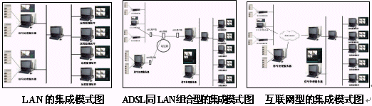 本系統(tǒng)的規(guī)劃設(shè)計(jì)出發(fā)點(diǎn)是以網(wǎng)絡(luò)為核心的,但對(duì)網(wǎng)絡(luò)的拓?fù)浣Y(jié)構(gòu)沒(méi)做任何的限制,同時(shí)在傳輸?shù)慕橘|(zhì)上也沒(méi)有任何的附加條件。本系統(tǒng)采用了國(guó)際標(biāo)準(zhǔn)的通信協(xié)議HTTP協(xié)議,實(shí)際上,本系統(tǒng)在規(guī)劃初衷的典型應(yīng)用模型中就規(guī)劃了三種不同應(yīng)用的拓?fù)浣Y(jié)構(gòu)。一種是局域網(wǎng)的拓?fù)浣Y(jié)構(gòu),另一種是ADSL同局域網(wǎng)相結(jié)合的拓?fù)浣Y(jié)構(gòu),第三種是互聯(lián)網(wǎng)的拓?fù)浣Y(jié)構(gòu)。