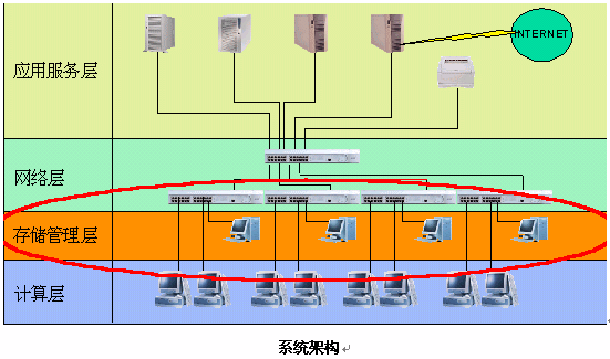 存儲管理層的管理機(jī)主要承擔(dān)著為E&E終端提供軟件(操作系統(tǒng)和應(yīng)用軟件)的服務(wù)。根據(jù)實際需要,管理機(jī)可以提供多種操作系統(tǒng)的環(huán)境和多種應(yīng)用的環(huán)境。每臺管理機(jī)最大可以為60臺的E&E終端提供服務(wù),可以實現(xiàn)操作系統(tǒng)、應(yīng)用、配置的統(tǒng)一分發(fā)和維護(hù)。
