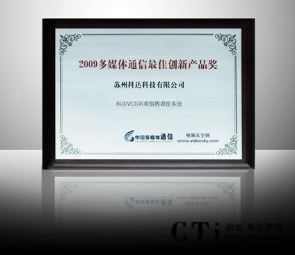 CTI論壇(ctiforum)3月29日消息(記者 袁青):近日,在《中國多媒體通信》雜志及視頻天空網(wǎng)強勢啟動的“2009年度中國多媒體通信行業(yè)大獎”評選活動中,科達VCS可視指揮調度系統(tǒng)以其產(chǎn)品的專業(yè)性、直觀性、準確性及有效性榮獲2009中國多媒體通信行業(yè)“創(chuàng)新產(chǎn)品獎”。