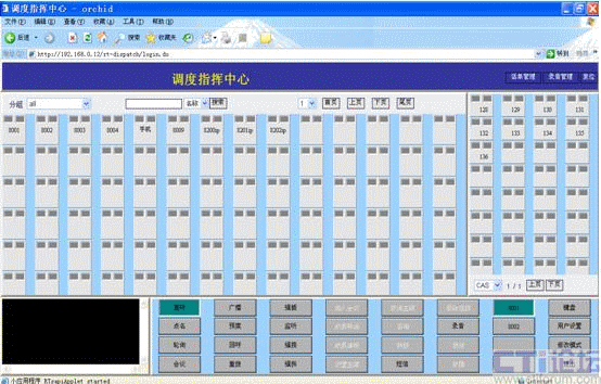 先點擊“會議”,可選擇多個用戶,選擇完畢后再次點擊“會議”,調(diào)度機先振鈴,摘起,被選中的所有用戶同時震鈴,全部接通后形成會議;所以成員可聽可說。會議操作包括:加入會議、成員聽說設(shè)置、主席設(shè)置等。
